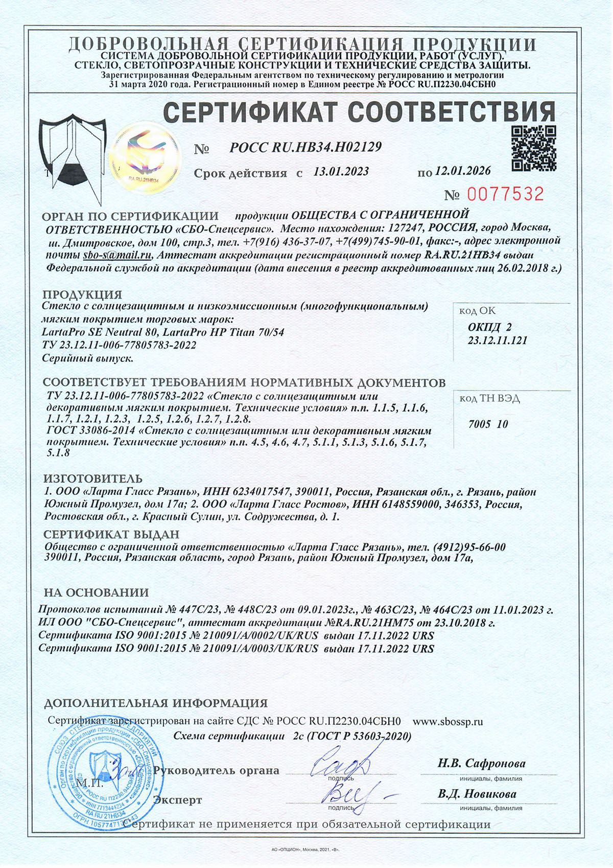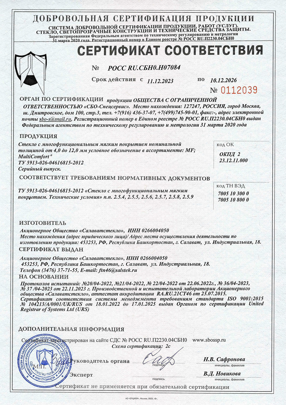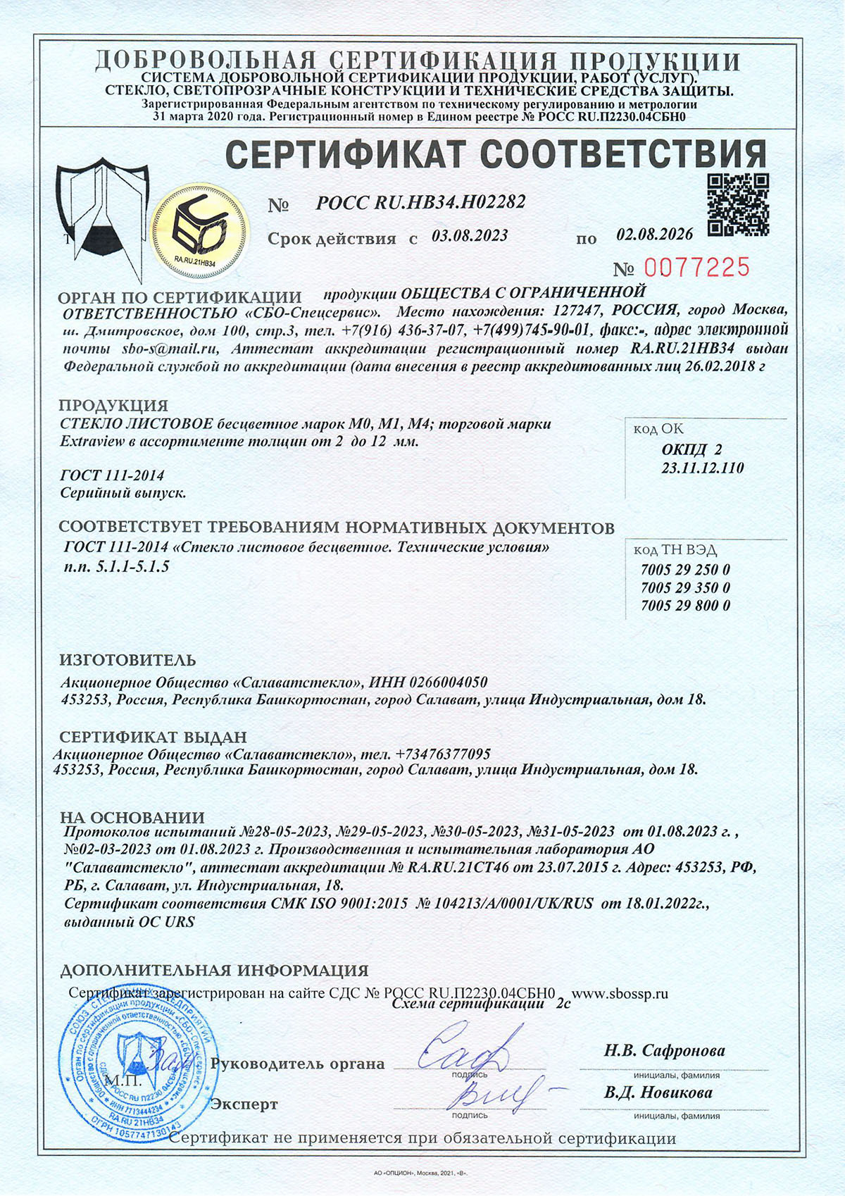 Сертификаты о соответствии стекла