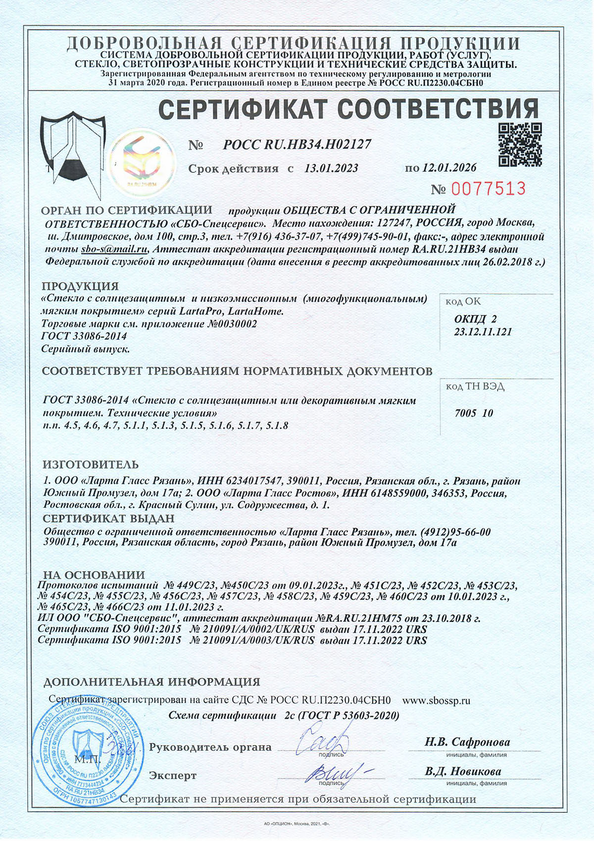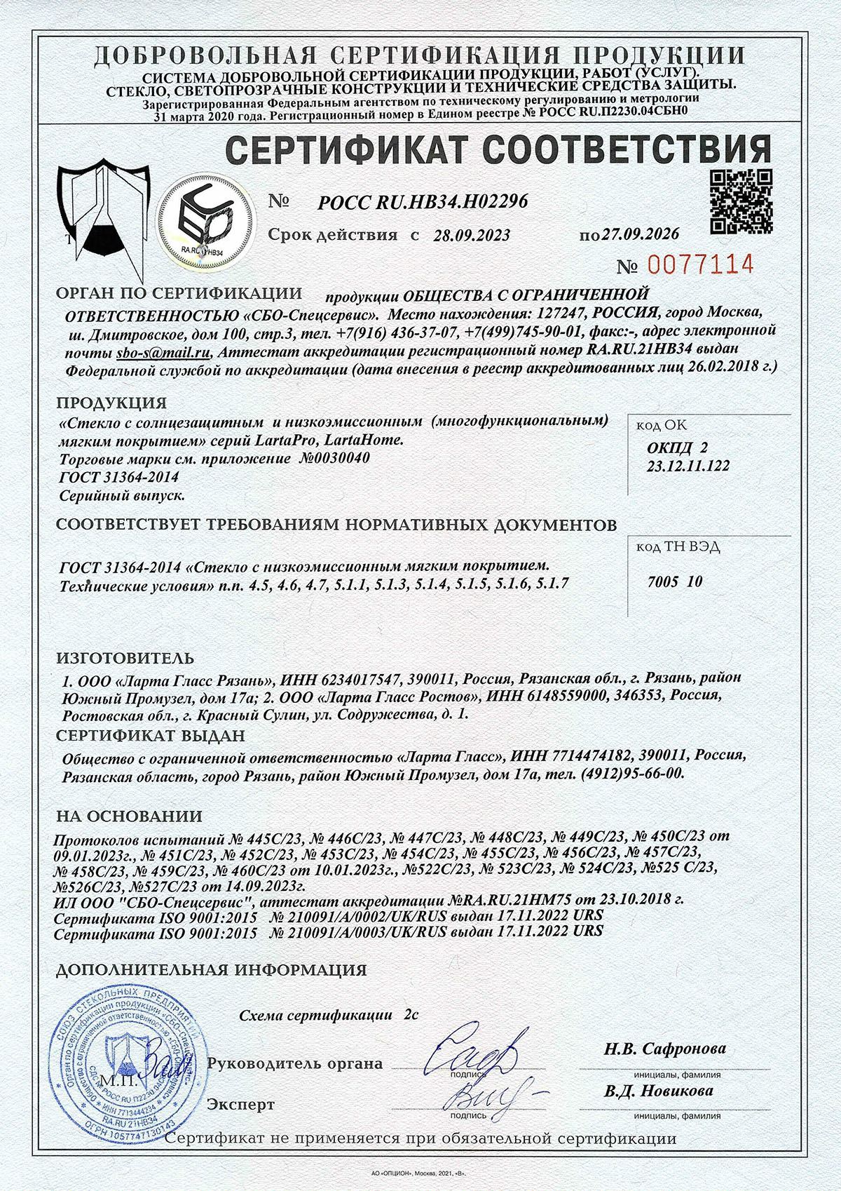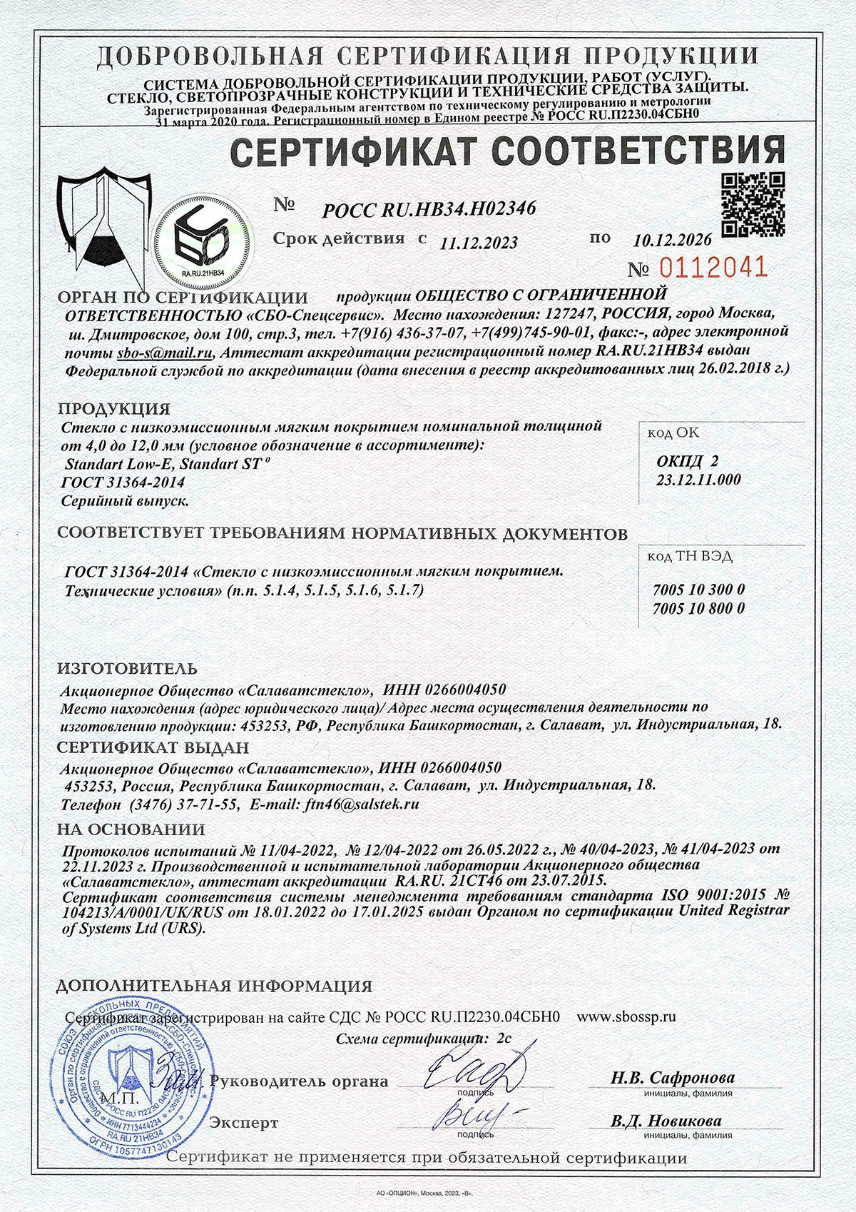 Сертификаты о соответствии стекла