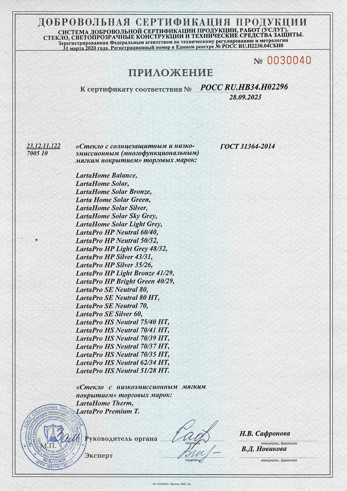 Сертификат соответствия стеклопакетов Астралит